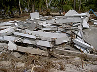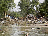 パークチョック集落を視察。家屋84、小学校、村の医療施設各1箇所、村の寺は2つあったが、すべて破壊された。現地には自然資源局の職員がいて、島の集落を管理しているとのことだったが、何をするすべもないという様子だった。災害当日、小学校は日曜日だったので、まだ子どもの被害は少なかった。4つの建物(教室など)はすべて流されて、ほとんど跡形もなかった。先生は死亡した。村の寺の僧2人も行方不明になっている。この集落の死亡者は現時点では32人だが、行方不明者が未だ多い。特に、男性は海に出て漁をしていたのでまだ死者は多くないが、女性は村にいたので、死者が多かったとのこと。村長は助かったが、その母親は死亡した。