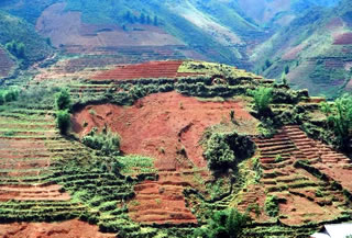| ■傾斜地に棚田と段々畑が広がるホアビン省タンラック郡 |