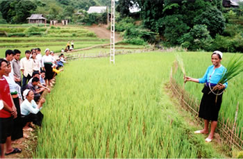 対象地域では平均して半年分ほどしか米を自給することができず、残りの半年分の米はトウモロコシを販売することで現金を得て購入しています。不安定なトウモロコシ市場に依存した生活はリスクが高く、村人は米の増収を望んでいます。そこでJVC は2007年度も引き続き、環境に負荷が少なく、かつ在来の農法に近く村人が応用しやすい3つの稲作改善方法(アヒル水稲同時作、魚水稲同時作、幼苗1本植え)を紹介しました。実践した多くの世帯では米の収量が増えています。