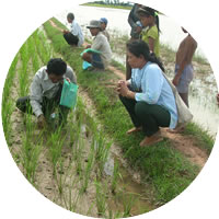農村で生計を立てられるようになることは、カンボジアの貧困削減のために不可欠です。しかし農薬や機械の導入などによって農民の金銭的負担は大きくなり、借金や出稼ぎが増えています。JVCは農薬や化学肥料、機械を使わずに収量を上げられる「幼苗1本植え」の研修などを通して、村の自立を支えています。