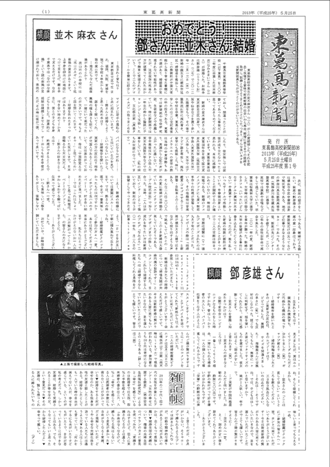 A newspaper extra issued when she got married. It was edited by her former colleagues of the newspaper club of her high school.