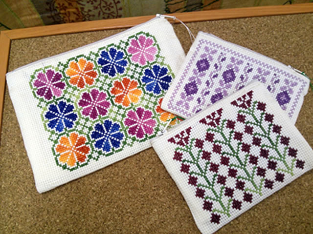 Palestinian women are really fashionable. Not only in Palestine but also in the Middle East, Muslim women cover their hair with “hijab” and they wear it nicely: dangling different colors with layering, matching the colors with shoes, and making it swelling intentionally. We might associate Islam with the image that women have to cover their hair, but indeed, they have their own tactics for the fashion and look like having fun by doing so. Palestinian’s embroidery is also overwhelming (the embroidery goods are available at JVC). They are sewed by women’s hands in refugee camps and are really elaborate and beautiful. I also tried it once but gave up (she laughs). I managed to make a bookmark, but if the size becomes bigger than that, you need substantial patience.