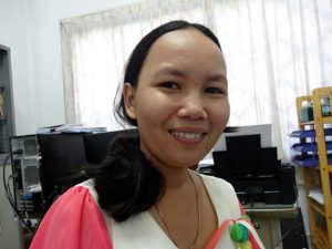 This time I would like to introduce Ms. Chanlaksmey, a graceful lady engaged in accounting at our office in Phnom Penh. Ms. Chanlaksmey is a Catholic in a country where Buddhism prevails, so I was able to listen to her interesting stories which differ considerably to the other staff members. Please read the contents of her interview now.