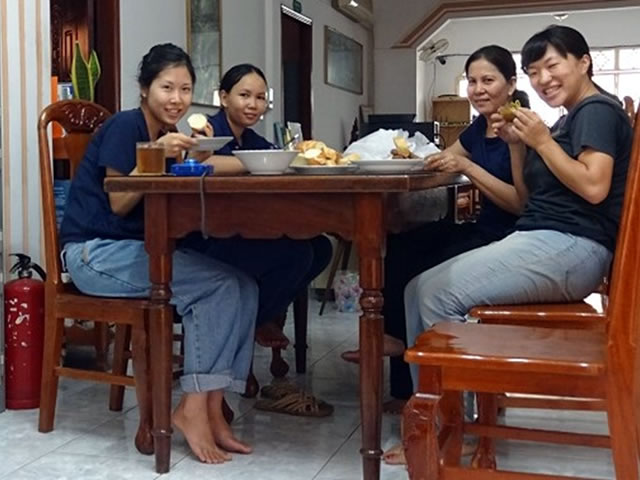 My impression is that she is exceptionally mild-mannered, while there are many vigorous members at JVC. I also think she is rather frank and open-hearted. I love her character of doing things in her own way; she goes outside for coolness by herself, while other staff members are laughing so much that their excitements will not end. Although she is friendly with others, she likes to keep at her own pace. She said, “It is not difficult to believe in the Catholic faith in Cambodia.” I think she is so strong at heart that she can say so.
