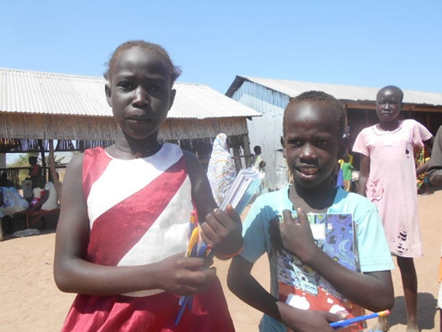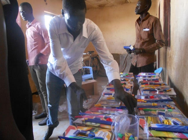 Today we are going to distribute school supplies in Mangaten refugee Camp 2. We began at 8 o’clock in the morning when we received school supplies such as notebooks from the stationary wholesaler near Konyo Konyo market, and then loaded them into a minivan, filling it up to the ceiling.