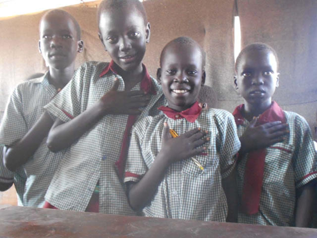 Two staff members from the Relief and Reconstruction Committee (RRC) of the South Sudan government were also present for today’s distribution. We had a brief meeting among ourselves before the distribution. Our group included Mr. Pouchi, the principal of the school, two teachers, Mr. Gabriel, the camp leader, the two staff members of RRC, Ms. Christine from JVC, and me. I explained about the activities of JVC in Mangaten so far, the purpose and quantity of the distribution today, and the target number of children.