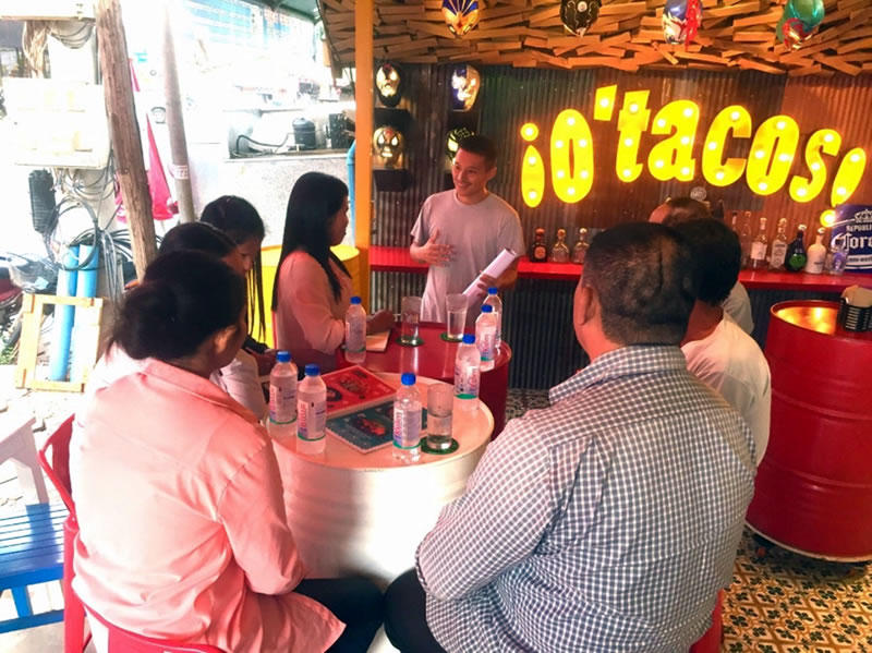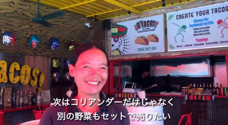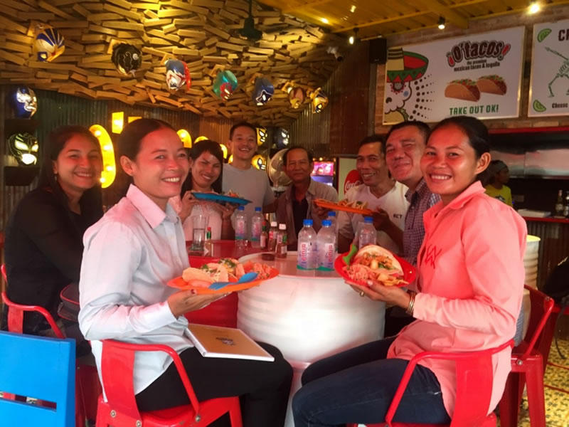 We visited the restaurant and tasted the dishes to know how the coriander is used. Ms. Bopper and Ms. Chomno both started with knowing what Mexican tacos are. They seemed to be cautious when they saw unfamiliar dishes in front of them (I understand them very well because I felt the same when I tried Cambodian food LOL). But in the end they were very satisfied, saying “Yum!”