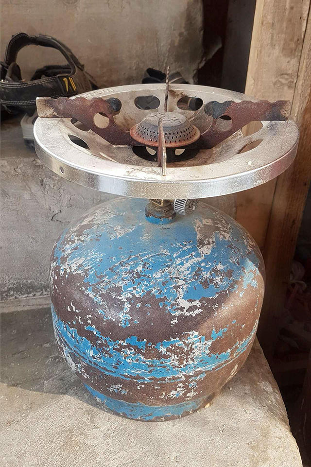 A heating equipment used in a standard household of the village which we used when it was extremely cold. They use gasoline because they do not have electricity.