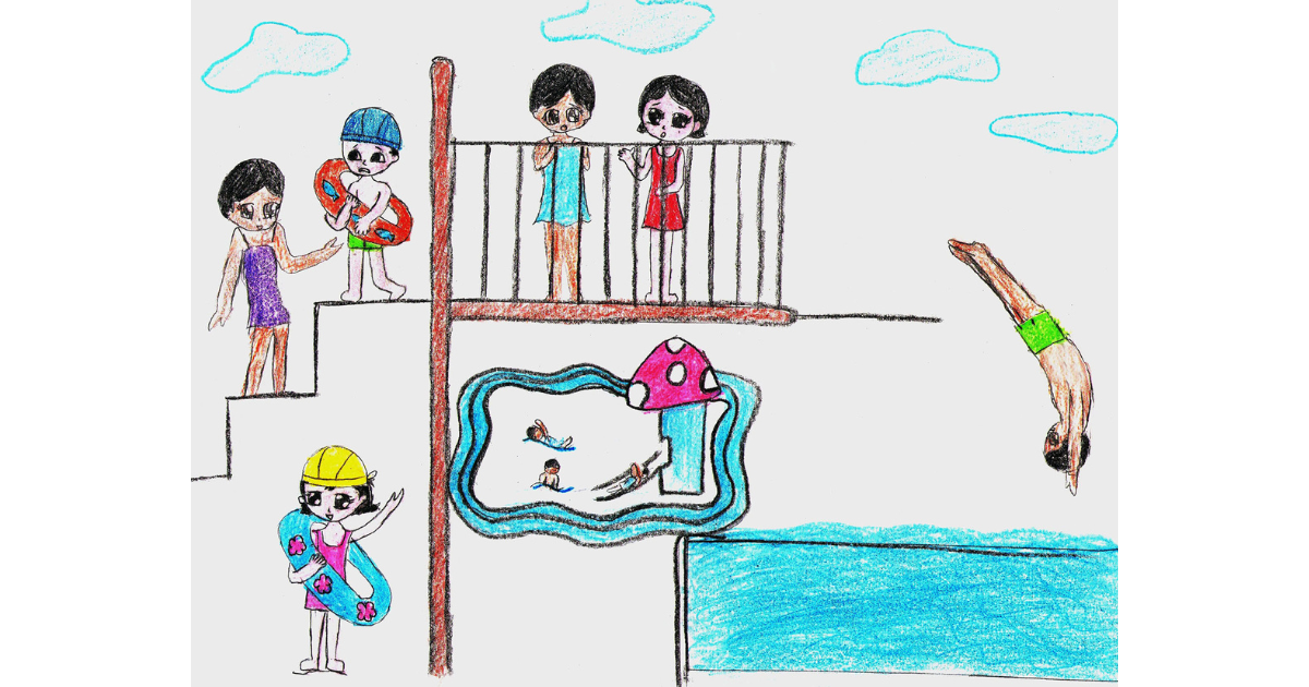 Munsu Water Park is always filled with happy laughter and songs of love. I would like to draw the children playing and having fun in such a happy place.