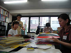 の方々・・・。モクモクと、時にはワイワイとお茶しながら、作業しています。