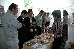 お昼休みを待って、社員食堂のエントランスで展示&出店がオープン!