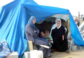 | ■家が破壊されテントで生活するガザの住民 |