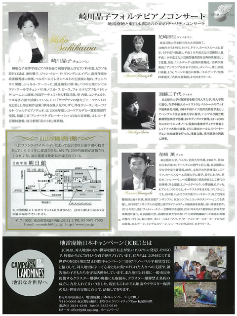 | 協力 | 地雷廃絶日本キャンペーン(JCBL)、梅岡楽器、自由学園 明日館 | ||||||||||