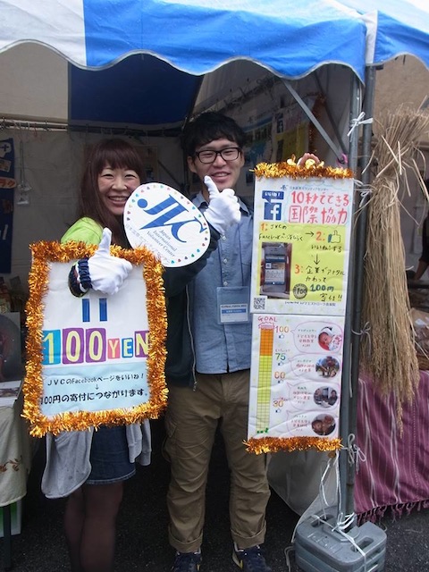 グローバルフェスタではイイね!で国際協力できる仕組みを紹介しました(写真左がこのイベントに出る現役インターンの大村さん)