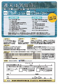| 日程 | 1日目(土曜日)10:40 J R 気仙沼駅 集合 2日目(日曜日)07:40 牡蠣の養殖体験・海上見学