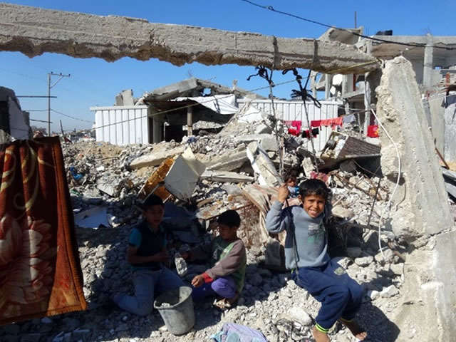 他方、去年の夏パレスチナ・ガザ地区でも、最新鋭の武器を持つイスラエル軍が、東京都23区より小さな面積に6万発以上の砲弾・ミサイルを降り注ぎ、2千人を超える人々が犠牲になりました。