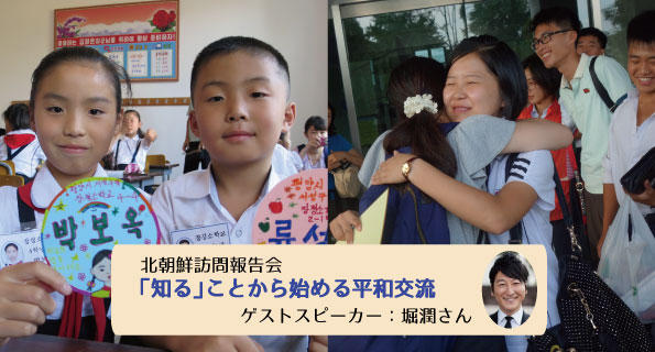 今回は、ゲストスピーカーに訪朝メンバーとして同行するジャーナリストの堀潤さんをお迎えして訪朝報告会を開きます。 なかなか報道では触れられない、私たちが出会った北朝鮮の「普通の人々」の姿をお伝えします。ぜひ聞きにいらしてください。