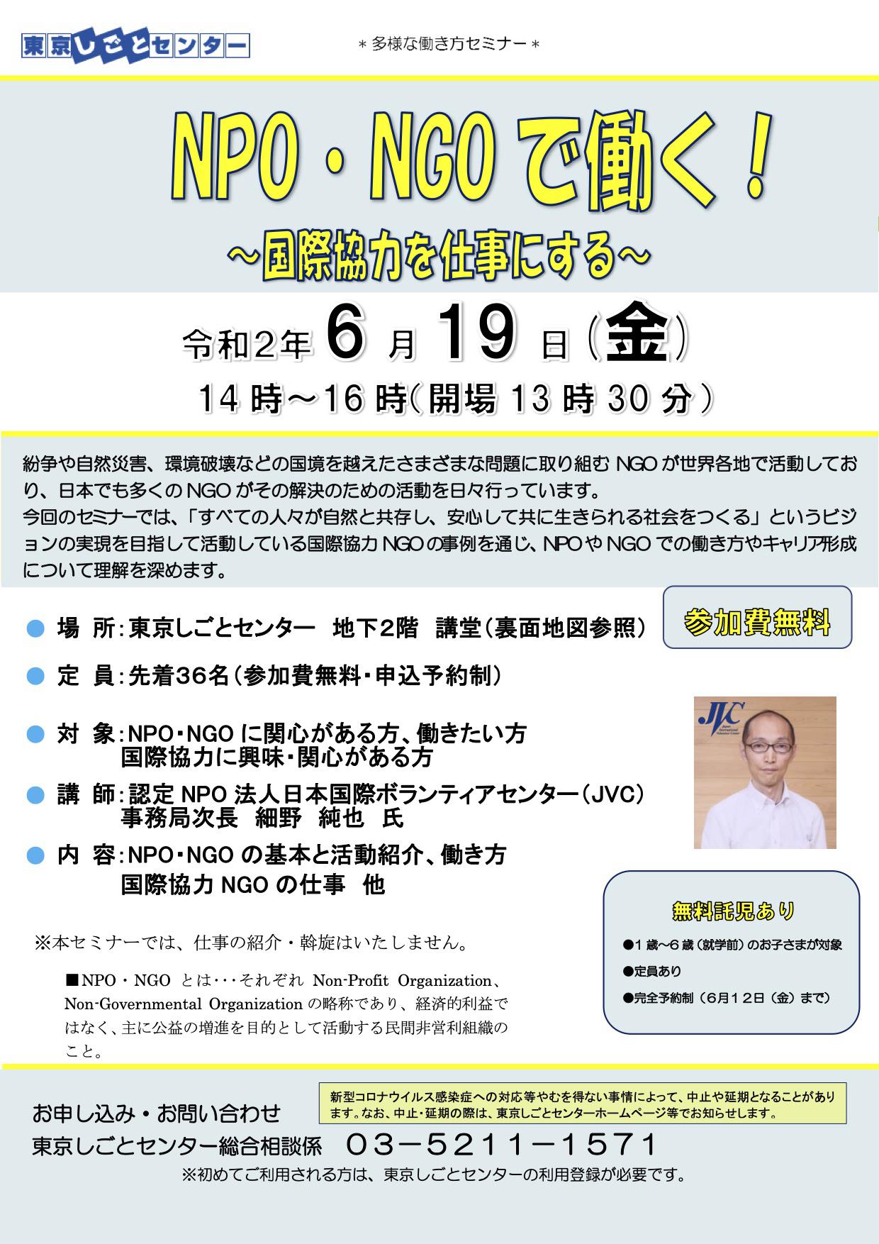 東京しごとセンターで開催される多様な働き方セミナーに、JVC事務局次長の細野が登壇します。