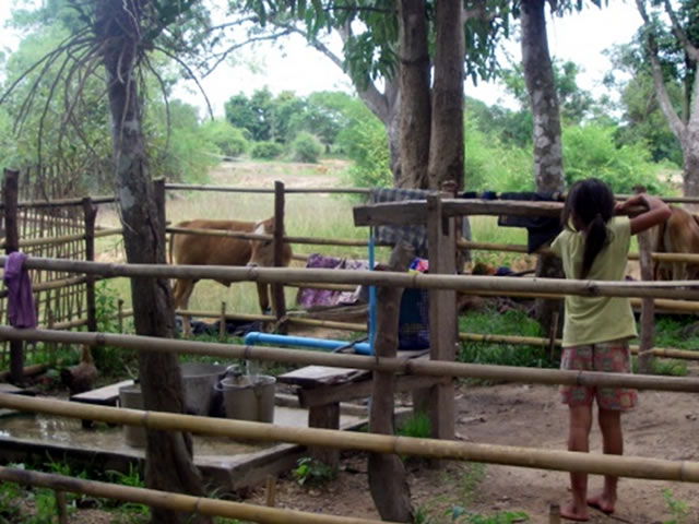 ラオス農村部では、子どもの栄養不良が大きな問題です。その原因の一つとして、衛生的な水へのアクセスの不足が下痢などを引き起こし、せっかく摂取した栄養を失わせているのです。小型井戸1本で15家族が衛生的な水を使用できます。