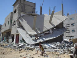 パレスチナ自治区であるガザ南部のラファ地区では、イスラエル軍による激しい軍事攻撃と家屋破壊が行われています。この5月以降、激しい家屋破壊によってすでに1,064人もの人々が住む家を失いました。17日からはラファ一帯がイスラエル軍によって封鎖され、戦車、ブルドーザー、武装ヘリコプターなどによる攻撃が行われており、家屋だけでなく、医療施設、水道や電気などのインフラ設備なども破壊されています。これは、2002年に西岸地区ジェニンなどで行われた「防御の盾」作戦以来、最大の軍事攻撃といわれています。この中で、約40人ものパレスチナ人が亡くなり、何百人もの人びとが負傷しています。