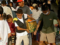 ■届いた支援物資を運び出す子供たち。 パンガー県カオラックの救援センターで。 (1/2撮影) |