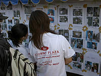 ■遺体の身元確認をするために掲示板 に貼り出された写真に見入る被災者。 パンガー県カオラックの救援センター で。(1/2撮影) |