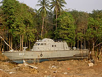 ■内陸まで押し流された警察の巡視艇。 パンガー県カオラック(1/2撮影) |