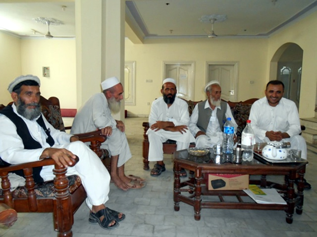 JVCアフガニスタンの事務所自体はジャララバードの街にありますが、実際にプロジェクトとして診療所を運営しているのは街から少し離れた村の中です。今日の事務所訪問者は、JVC診療所のある、シェワ郡クズ・カシュコート村の長老さんたちです。彼らは地域の「保健委員」を務め、実質的な村のリーダーでもあります。