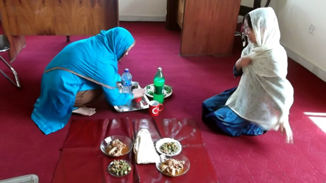 さて、アフガニスタンの伝統的な習慣では男女は一緒に食事をとらないので、私は男性スタッフと長老たちとは別の部屋で、同じくJVC保健アドバイザーの西さんと一緒に、アフガニスタンの女性スタッフ二人とお昼を食べました。