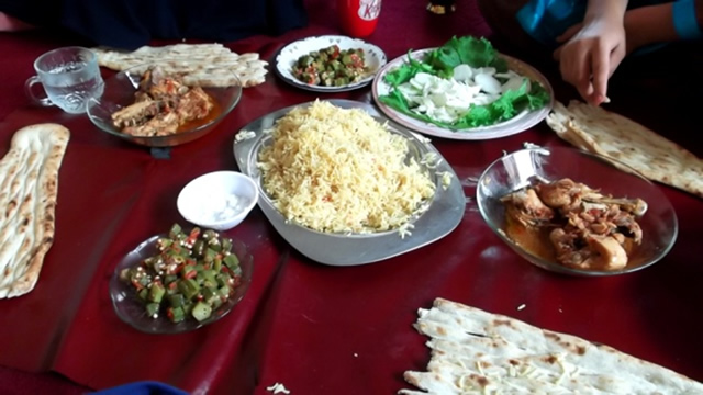 今日のメニューはとっても豪華!ドデ(パンのこと)、米、オクラ、チキン、きゅうりとレタス。デザートには甘酸っぱいメロン。今のアフガニスタンはフルーツがとてもおいしい時期のようで、どれも日本のものより甘い気がします。