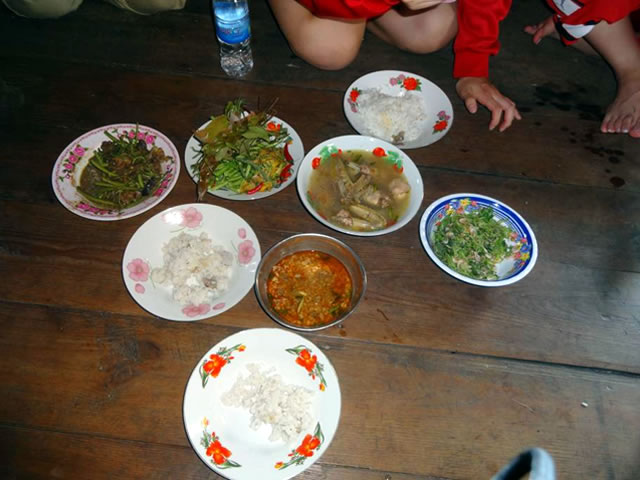 1日目は、市場に行ったり、森で"野菜"(食べられる葉っぱなど)をとったりしました。お昼には採ってきた野菜を使い、地元のお母さん達がおいしいお昼ご飯を振る舞ってくださいました。午後には地元の農家を訪問し、自宅で栽培している野菜、果物などを見せていただきました。そして、1日目の最後の見せ場、JVCスタッフ総出での魚釣りを披露!カンボジアの農村での食の現状を体験する1日となりました。