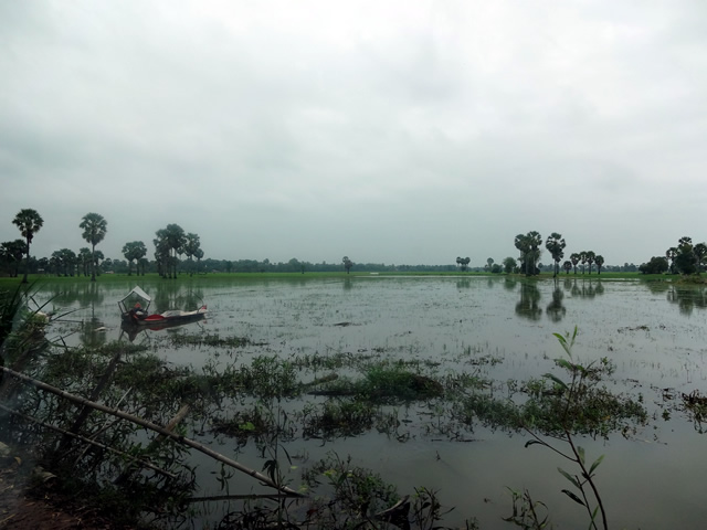サンバイ集合村の2村では、田んぼは50%以上被害を受けている様子です。ロビア村は、トンレサップに面している道を挟んだ村の南側の田んぼが全滅でした。しかし、2年前の洪水のように住民が高台へ避難するほどの水位には達していません。それでも、今回視察できた最南端、つまり、最もトンレサップ湖に近い場所では、水位は1メートルぐらいあり、稲は水の下に浸かってしまいました。
