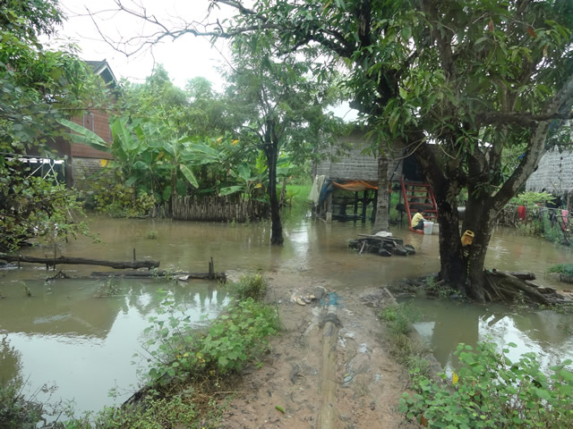 JVCの活動対象地で特に被害がひどいのは、サンバイ集合村プレイプロ村です。その次に被害が深刻なのは、サンバイ集合村のプレックスピア村とスピアンタナオットのロビア村です。これらの村は2年前の洪水でも一番酷かった場所です。今回視察できた村の中では、その他では水害被害はほとんどありませんでした。