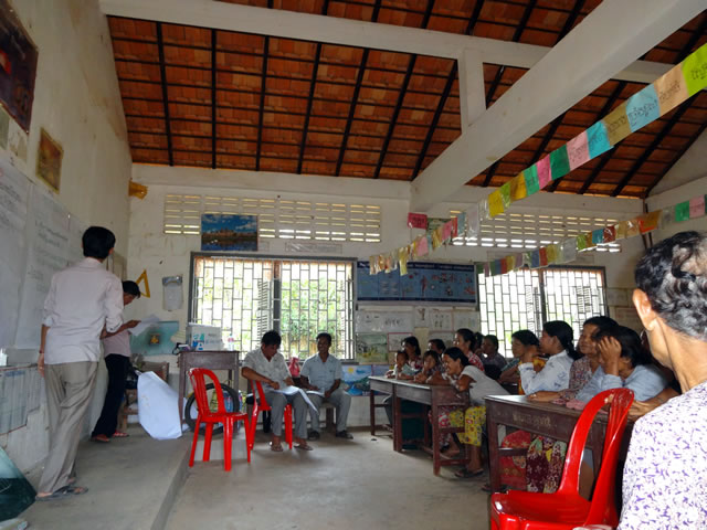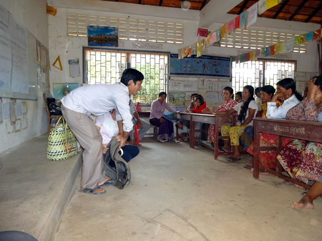 5月30日、学校の父母会の時間を少しお借りして、ゴミ管理の仕方についての研修を行いました。カンボジアの農村には、ゴミ収集、管理の仕組みがありません。そのため、ゴミを一色淡に燃やしてしまう、もしくは埋めてしまいます。