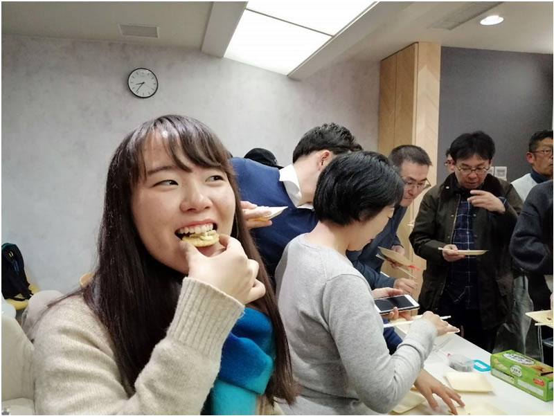 ローストコオロギのクラッカーのせ参加者のほとんどが「虫を初めて食べる」という方だったのに、いざ試食が始まるとその勢いに主催者側が圧倒されました(笑)