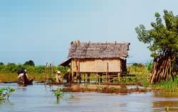 ■7月、雨季に入るとトンレサップの水位が あがり畑作ができなくなる。そろそろ畑の 出小屋を払う時期が近づいた。 |