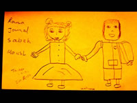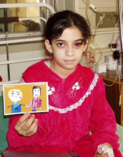 絵を描いてくれる子どもを捜す。ラナちゃんだけが応えてくれた。ラナちゃんは12歳でまもなく13歳になろうとしている。北部のモスルというところから入院してきた。20日前に白血病であることがわかったという。左目が充血しており真っ赤になっている。「末期になると眼球が飛び出すこともある。」という。