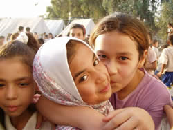 日が落ちかけたころ外に出るとテントの脇から子どもたちが群がってきた。私たちを離そうとしない。イラク戦争が巻き起こした悲劇が、このような形でパレスチナ人に降りかかろうとは誰が予測しただろう。