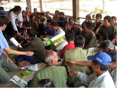森林チームでは引き続き自然資源カレンダー研修を行った。ピン郡の新しい対象村にて、土地法や森林法などの紹介を含めて行ったが、新しい対象村の村々にはベトナムの企業による植林が拡大しており、どの村でも熱心な議論があった。