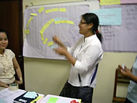 JVCは県と郡の農林局スタッフ向けに5日間のトレーニングを行ったが、その場に他のNGOからも数名が参加した。人数に余裕のない森林チームは、ヴィエンチャンにある中央政府の農林省と連携しながら、まるまる一週間を費やして、このトレーニングの準備を行った。トレーニングの初めの部分では、サワナケートで新しい「参加型土地利用計画」マニュアルを公表するために、半日間の会議をワークショップ形式で開催した。ヴィエンチャンから政府の高級官僚を数名呼び、彼らにサワナケートの7つの郡から集まった役人に向けた「土地利用計画」に関する新しい政策についてのプレゼンテーションをしてもらった。この7郡には、JVCの活動しているピン郡とアサポン郡の他、サワナケート県の東部に位置する山岳地域の郡も含まれていた。