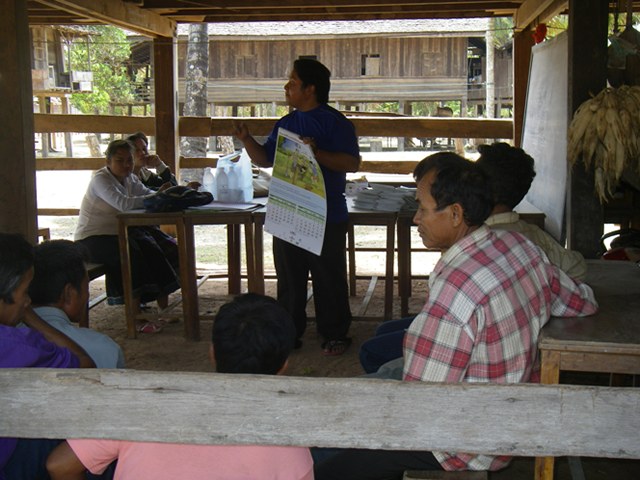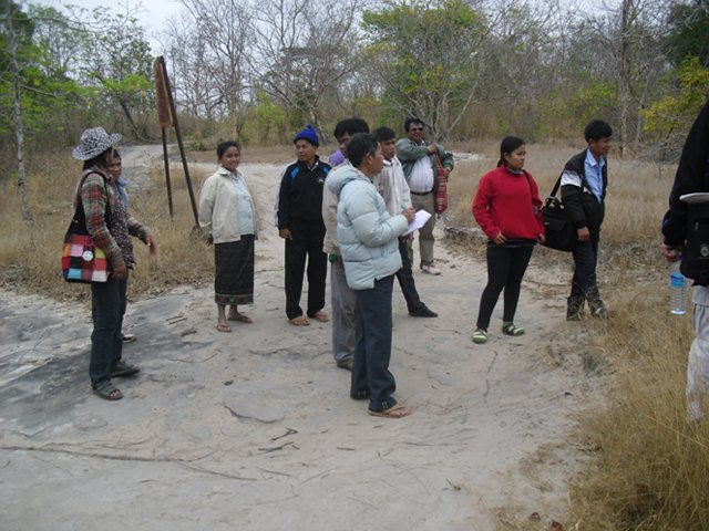 今月の最終週には、活動対象村の6名の村人と5名の行政官を伴い、JVCの森林チームは東北タイの様々な共有林地帯を訪問した。タイで共有林活動を支援する「地域共有林訓練センター(RECOFTC))」の協力を得て、JVCは受け入れ先の手配を行うこととなった。5日間の行程を通じて、スタディツアーに参加した村人と行政官は、タイの村人が様々な産業植林プロジェクトから自分たちの森林を守るために奮闘していることを聞くことができた。タイの状況はラオスとまったく異なってはいるものの、彼らが森林に関する権利を守るために行っている努力は、両国でたいへん類似している。この訪問期間を通じ、スタディツアーに参加した村人は、タイの人々の森林を守るための奮闘の歴史と経験を学ぶことができ、現在のラオスの文脈において大いに関連するということを悟った。