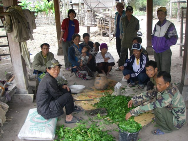 ラオス国立大学森林学部の調査団が、今月再びJVCの活動対象となっているアサポン郡の2村を訪問し、NTFPが生育する乾燥フタバガキ林についての調査を続行した。今回の調査では、各世帯へのインタビュー、フォーカス・グループワーク(女性、若者など対象者を絞ったグループごとに行う調査)の他に、乾燥フタバガキ林の中にどの程度の割合でNTFPが生育しているかを見るためのサンプル調査も行った。調査の目的は、村人が森林地帯の重要性を示す方法として、(普段軽視されがちな)乾燥フタバガキ林の重要性に光を当てることにあった。