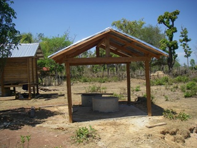 昨年浅井戸用のセメントリングを支援したN村で、3基の浅井戸で屋根とプラットフォームが完成した。JVCはセメント類を支援し、設置は全て村人の手で行われた。これらは以前からある村人によって掘られた浅井戸だが、素掘りでセメントリングがないため水が枯れやすく、また井戸上方の屋根、井戸周りのプラットフォームがなく衛生上の問題もあることから、環境の改善を行った。