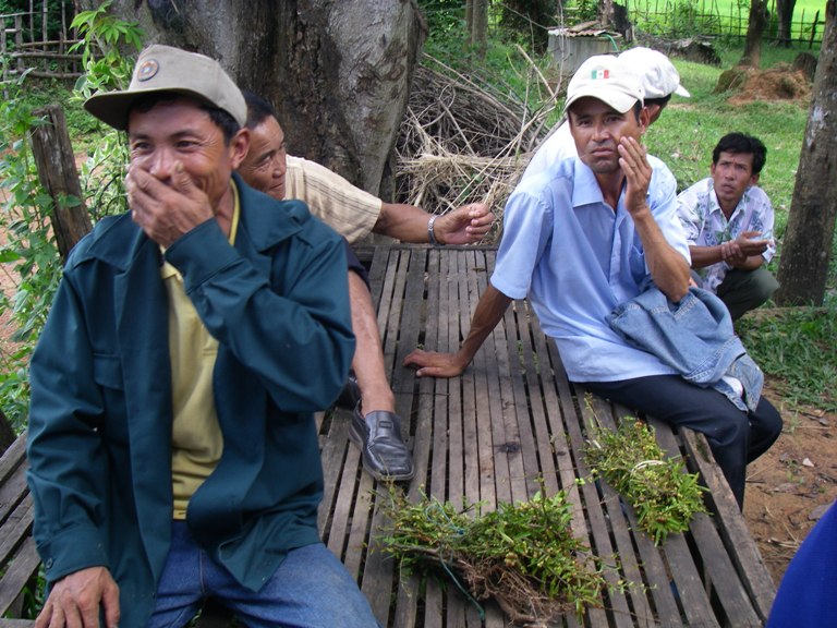 仏舎利塔参拝も終わり車へと移動していると、何人かの村人が、草原の上にしゃがみこんでいる。なんだろう?と思いあとで聞いてみると、薬草になる草を発見して摘んでいたとのこと。また、訪問先の農家の軒先でも腎臓にいいという薬草を発見し、お土産にしていた。「サワナケートにはあまり生えていないんだ」とニコニコ顔だった。あまり生えていないにもかかわらず、鋭く発見する眼力はさすがです。
