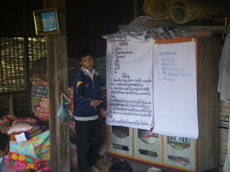 (前回から続く)一夜明けて、今回の村入りの目的である堆肥研修の当日。このPN村が初日となる。バーシーの件があって最初になったということもあるが、実はそのほかにも、スタッフが望んだということもある。この村はリーダーたる村長の指導力が強く、サーマキー(結束)があり、また今まであまりNGOの対象村になったことがなく、JVCへの関心も高い。そのため、この村から堆肥研修を始めることで、弾みのようなものをつけたかったのだ。また、新たにインターンとなるブルー族の若者(後日紹介します)にとっての初日でもあり、ブルー族の村で始めたかった。