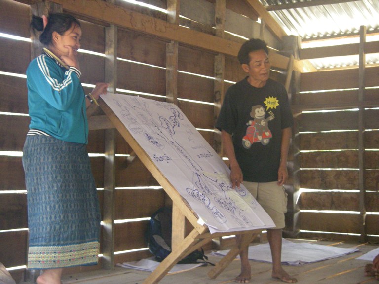 もっと凄いのは、あるブルー族のおじさんで、ブルー語なので2名のスタッフを除いてはほとんど理解できないのにもかかわらず、他のラオス人スタッフも笑っていたし、私すら笑った。おじさんの手振り、表情、間のようなものが、言葉が分からずともなんだかおかしく、爆笑する村人につられて笑ってしまったのだ。これまで見てきた感じでは、発表で笑いの多い村では、村の雰囲気もいい場合が多い気がします。