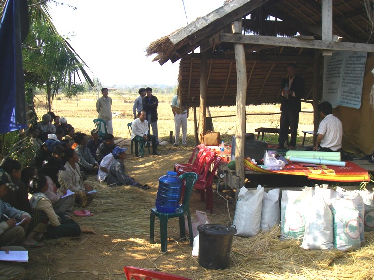ピン郡農林事務所から、この乾季にSRI(幼苗一本植え)を実施したいと考えている農家のために、研修を行って欲しいという依頼があり、農業チームが出動した。SRI実施農民代表として以前プロジェクトを行っていたカムアン県から村人を招聘したのだが、ここで彼らよりうれしい情報が入った。今年彼らの村では75家族、灌漑の使える田んぼを持つ全家族がこの乾季にSRIを実施するという。少し前に灌漑の補修があったため、実は以前から関心を持っていたが灌漑の不備の不安から実施に踏み切れなかった家族も、みな実施するというのだ。