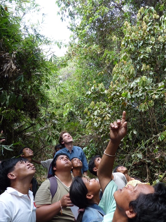 参加型調査で訪れたある村で、不思議な話を耳にした。乾季も真っ只中のこの2月だが、4日ほど前から、木のてっぺんのほうの葉っぱから水かしたたり落ちてくるという現象が起きているという。そこで昼食後早速村人ともにその森に行ってみると、確かに木のてっぺんから一滴また一滴と水がしたたり落ちてくるのだ。