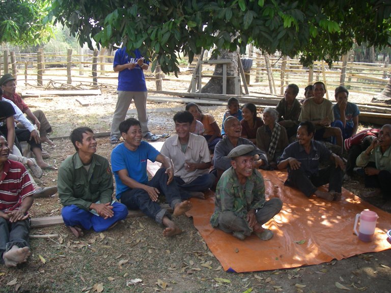 ブルー族の村にて。ラオ語で説明した後、「わかりましたよね、わかりましたよね?」と確認し、何人かの村人が「わかったよ」と答えると、「そうですよね、では次は…」と次に進もうとする若いスタッフ。ブルー族のスタッフに、ブルー語に通訳するようその場で促しつつ、あとで皆に注意する。「わからない人が元気よく“わからない!”と果たして言うだろうか?恥ずかしかったりして、なかなか言えないんじゃないだろうか?」