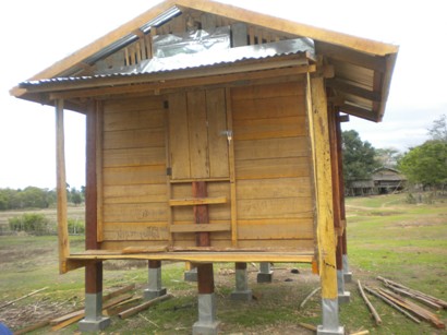 米銀行のための米倉建設が各村で進んでいる。村人には普通のことだろうが、すべて自分たちでやったと思うと、やはりすごいなあ、と思ってしまう。実施予定の5村すべてで完成済み、もしくは完成手前。早い村はもうお米を集めている。ところで、足に巻かれている銀色のものは何だかわかりますか?正解は次回。